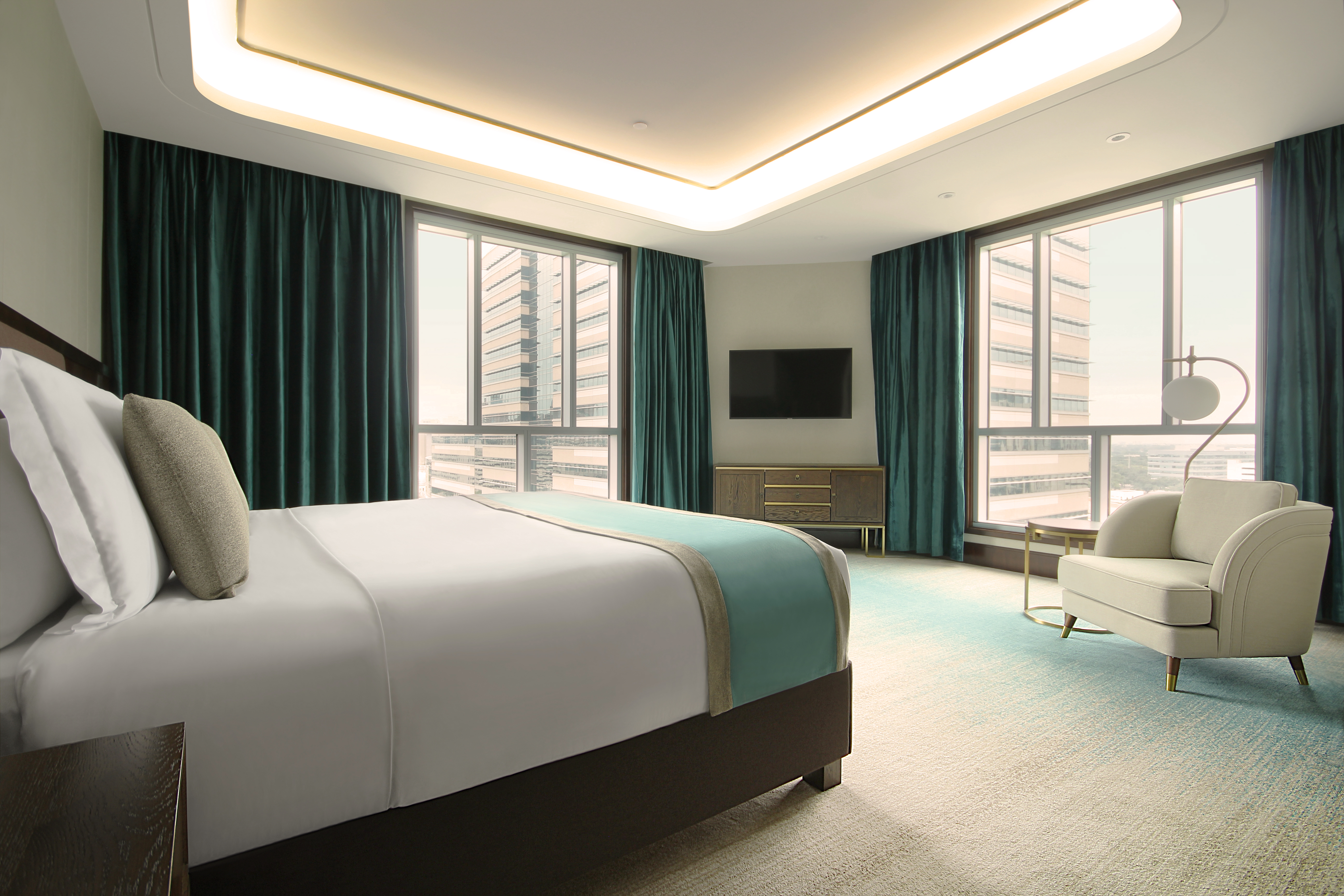 The 13-story hotel offers 267 well-appointed guestrooms and suites featuring spacious living areas with an abundance of natural light and are equipped with complimentary Wi-Fi, top-of-the-line Samsung Smart TVs, Dyson hairdryers, Nespresso coffeemakers, Digital Newspapers with PressReader®, and marble bathrooms with rain showerheads and high-end bathroom amenities.