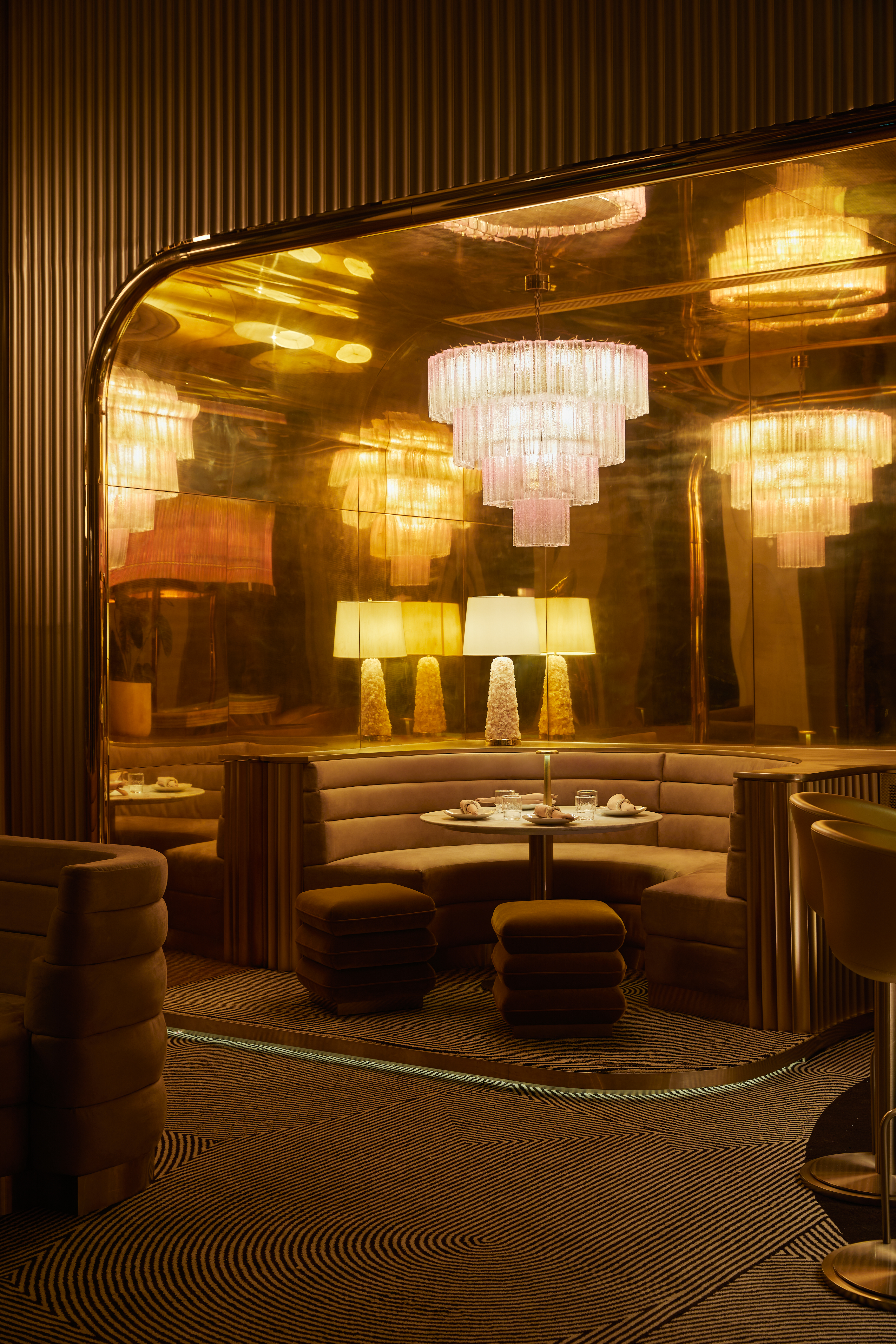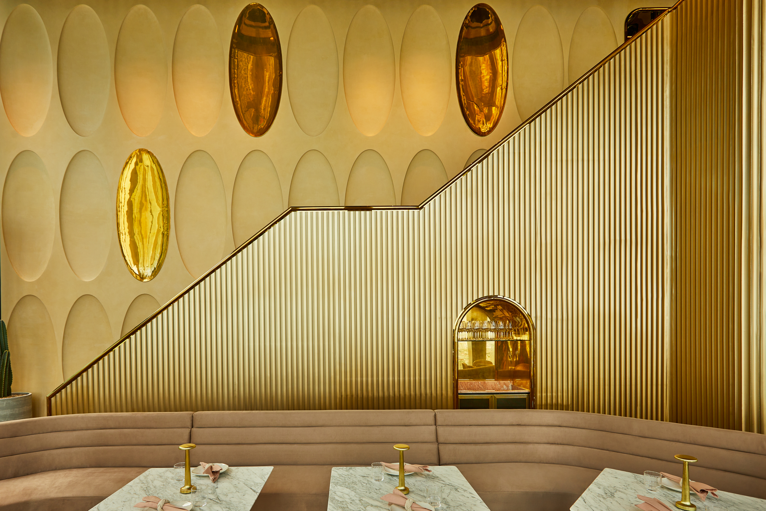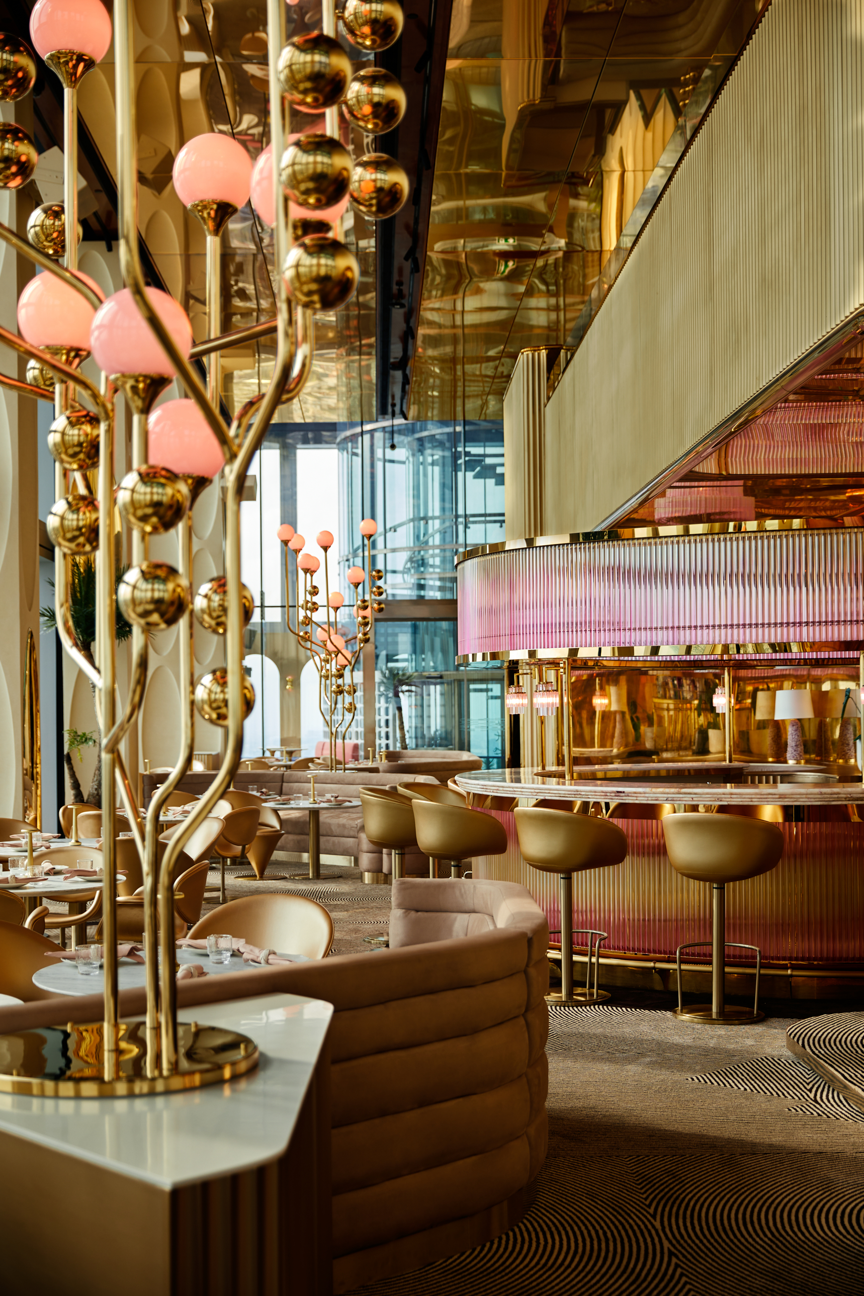 Ojo’s design concept was envisioned by globally renown creative talent Ou Baholyodhin. In developing the design narrative for Ojo, Ou recalls a journey he took across Central America where indigenous, European, African, and Asian influences converge to create a colorful, idiosyncratic culture. Ojo’s rich, jewel-toned aesthetics takes inspiration from the continent’s precious metals and gemstones that drew prospectors in pursuit of riches to that part of the world. Also woven into the design are subtle references to the mysticism of Latin America’s ancient civilizations. The result is a glamorous environment anchored by gold hues and offset by organic, gemstone tones creating a visual representation of an architectural crown jewel.